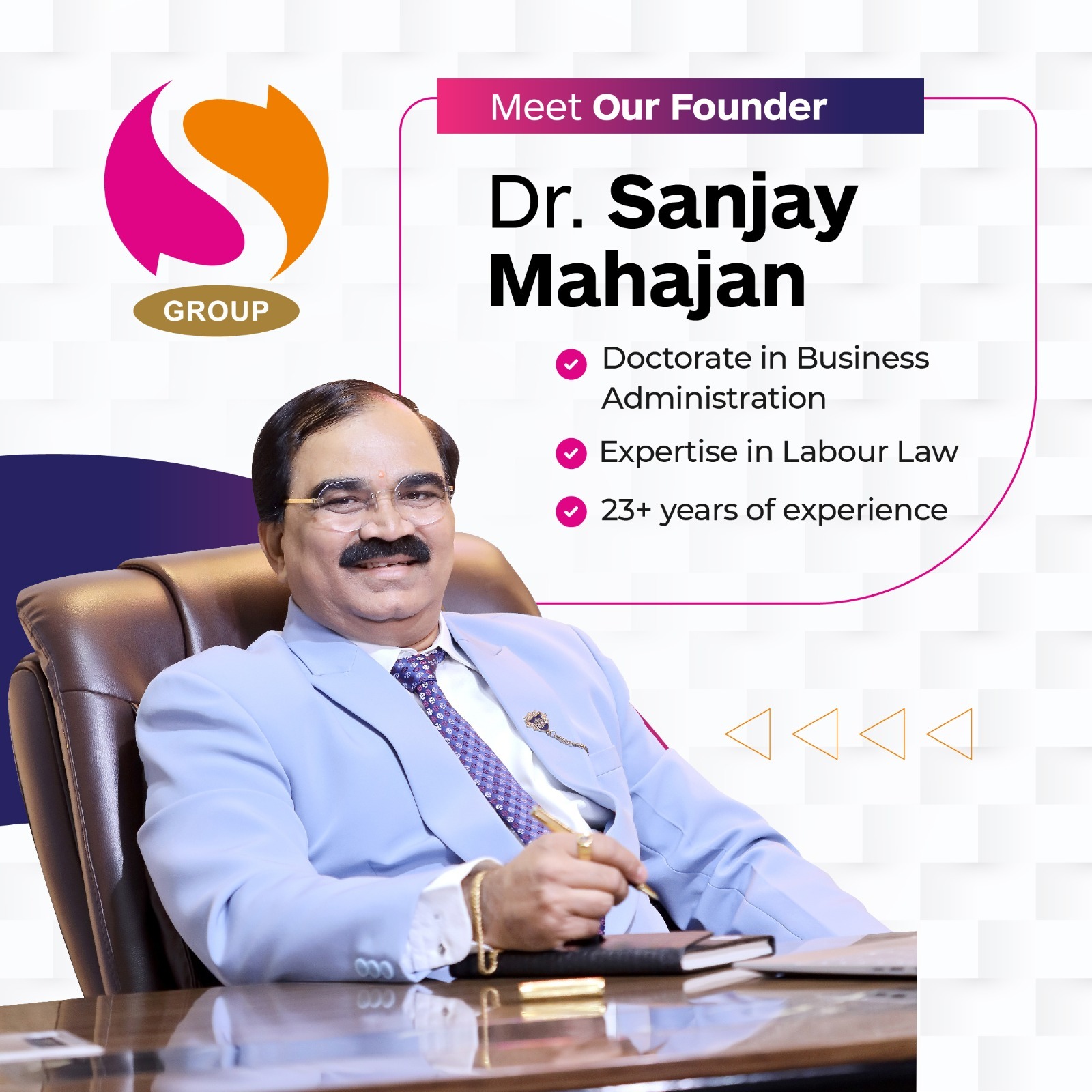Welcome to S Group, a leading HR solutions and management services consultancy founded in 2000 by Mr. Sanjay Mahajan in Kolhapur. With over 20 years of experience, we have earned our reputation as a beacon of excellence in the industry. As an ISO 9001-2015 certified organization, we are committed to providing comprehensive HR services and contract labour supply while strictly adhering to labour laws and government regulations. At S Group, we understand the challenges faced by organizations in managing their HR functions effectively. That's why our dedicated team of experts specializes in navigating the complexities of labour laws and resolving everyday HR hurdles. Operating across various states, we take pride in serving a wide range of esteemed clients. Our commitment to excellence and compliance has enabled us to become a trusted partner for organizations seeking HR solutions. With S Group by your side, you can confidently navigate the dynamic landscape of human resource management and unlock your organization's full potential.